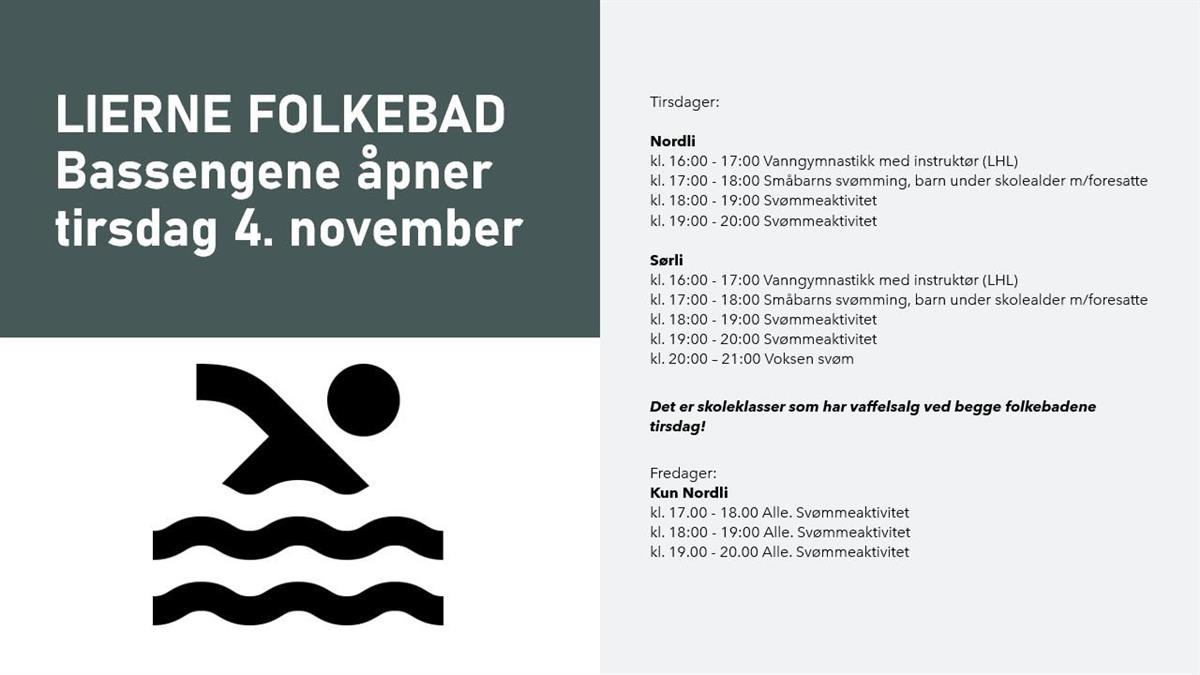 LIERNE FOLKEBAD Bassengene i Lierne åpner tirsdag 4.november 2025